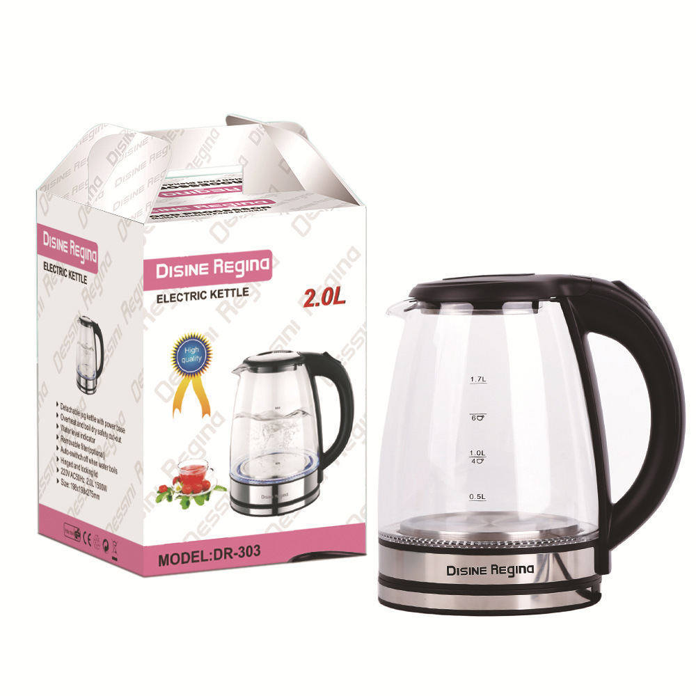 Foreign trade 2L blue glass electric kettle large capacity household electric kettle rubber domestic trade foreign trade export Europe insert