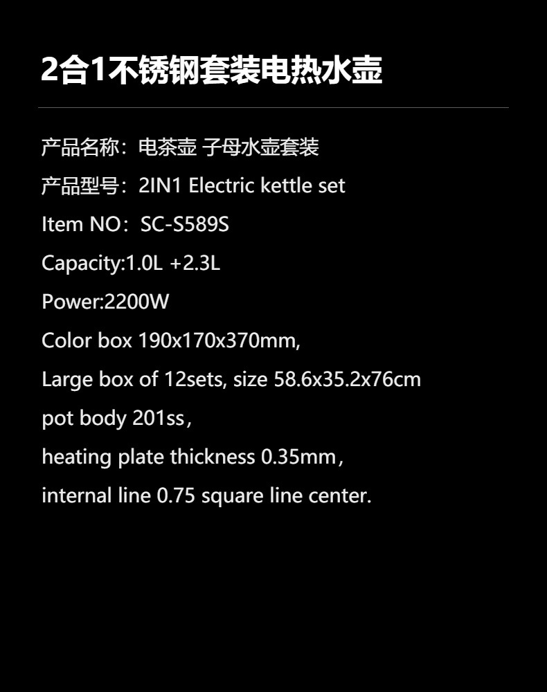 Cross-border 2L electric kettle set stainless steel large capacity household electric kettle insulation pot export European plug