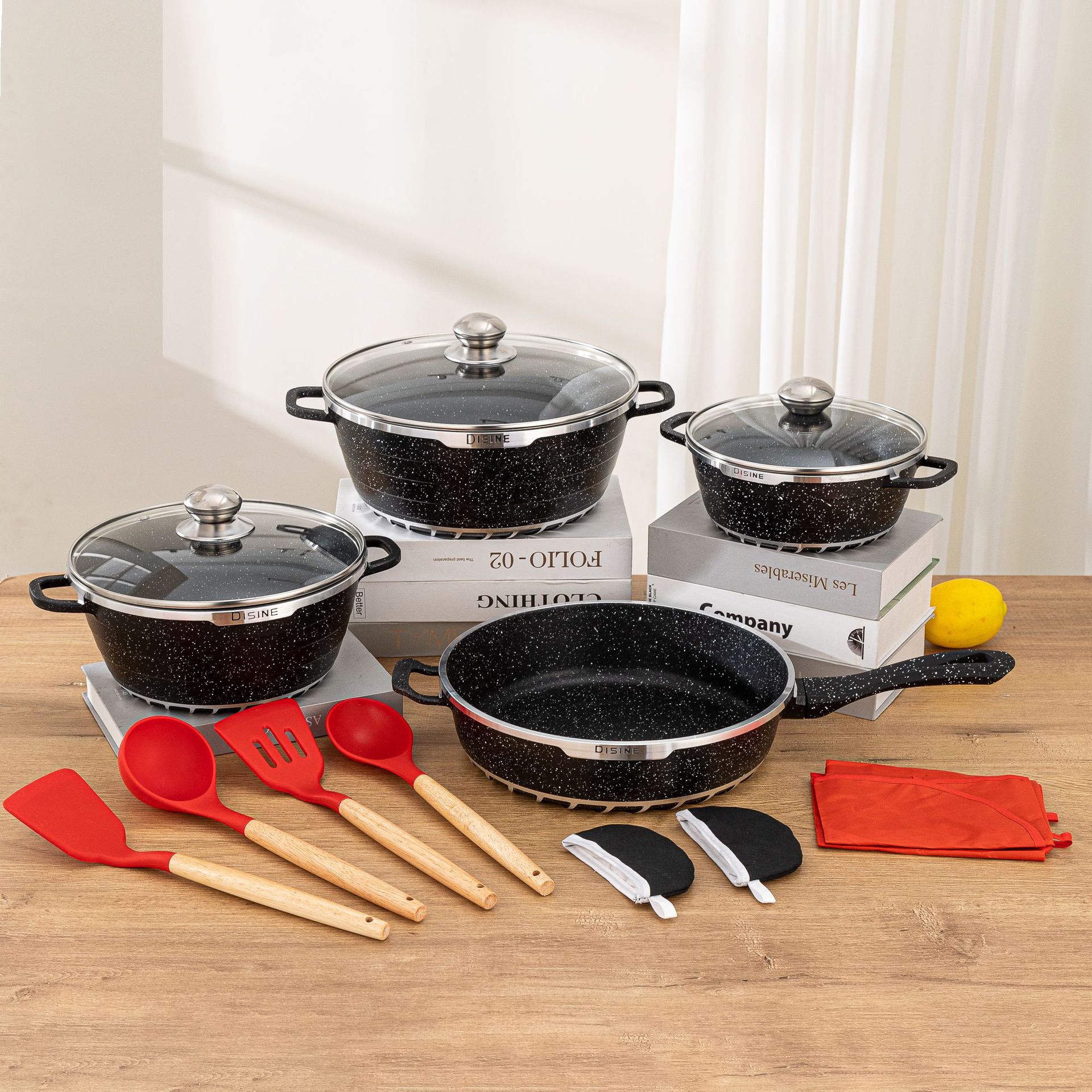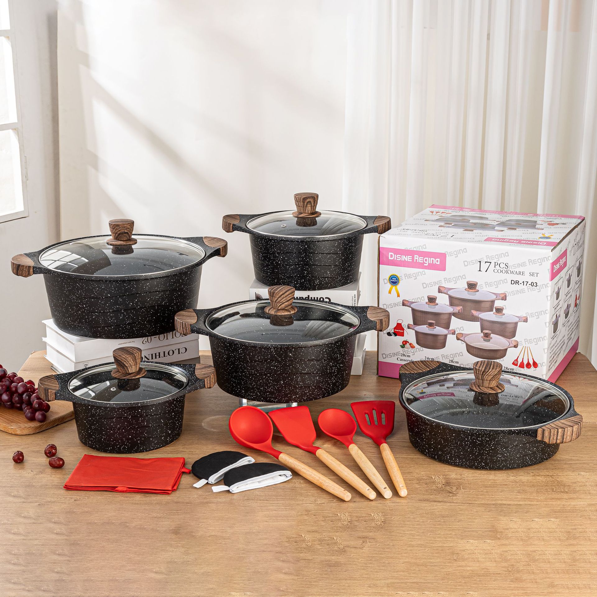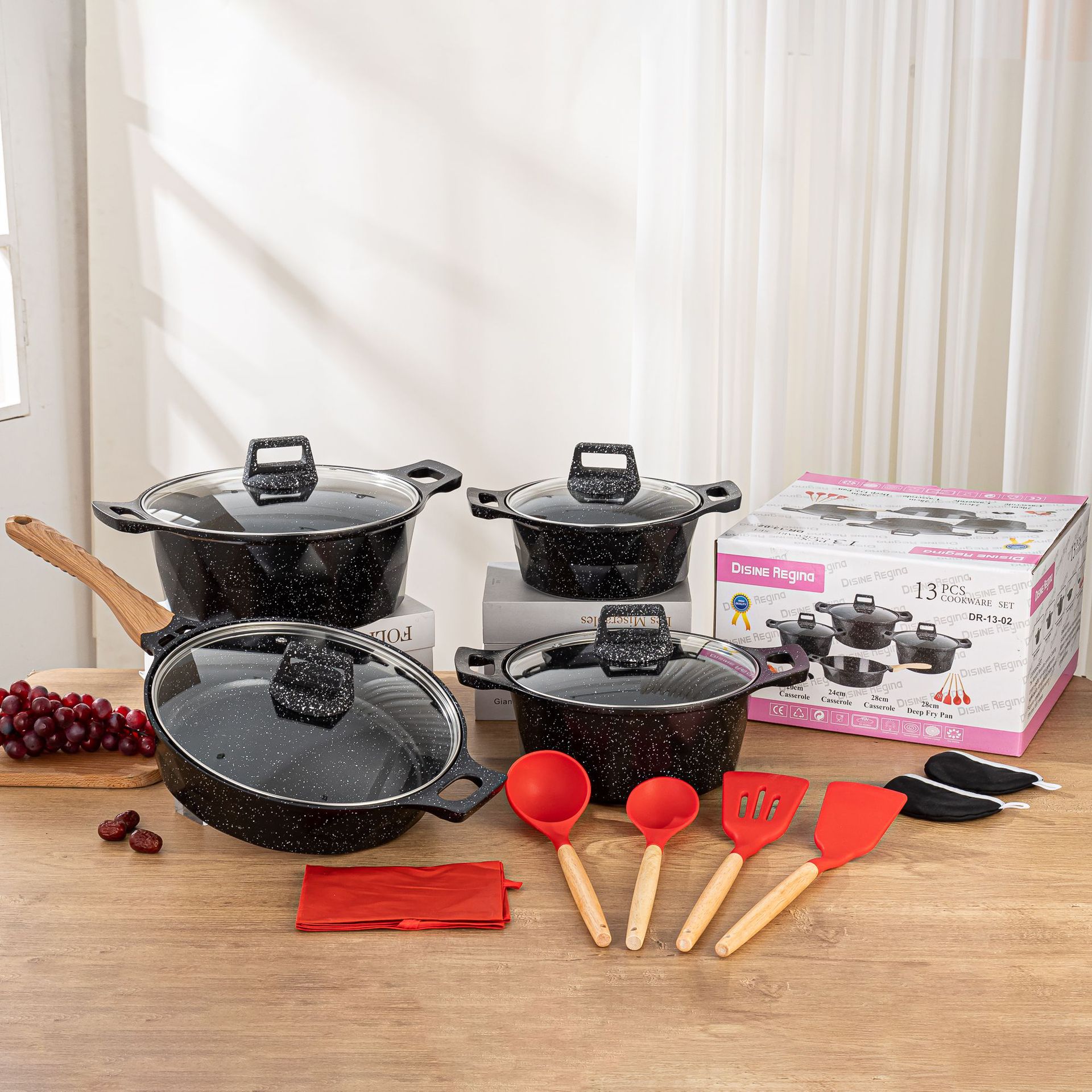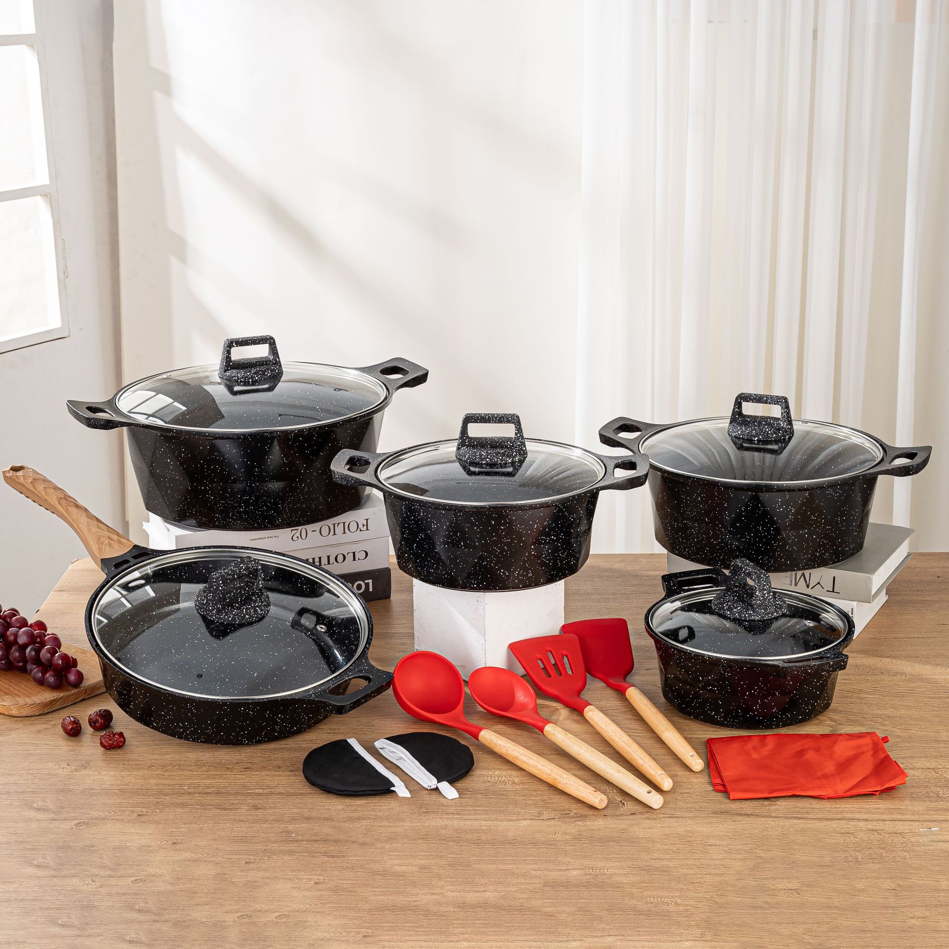 Granite 22-piece aluminum pan set 22-piece pan set granite non-stick pan non-stick die cast aluminum pan cross-border
