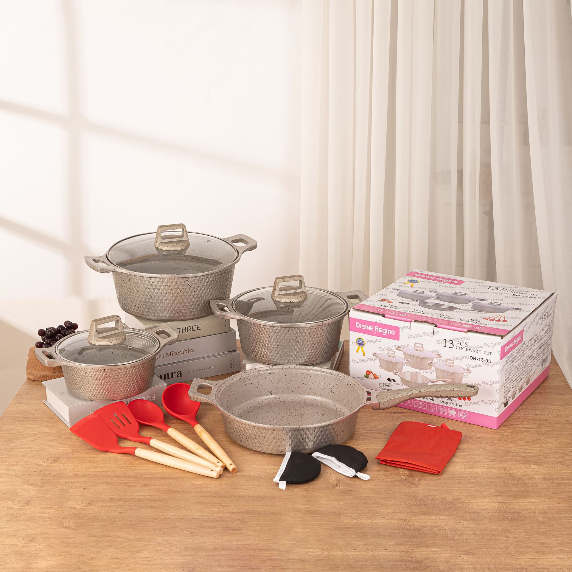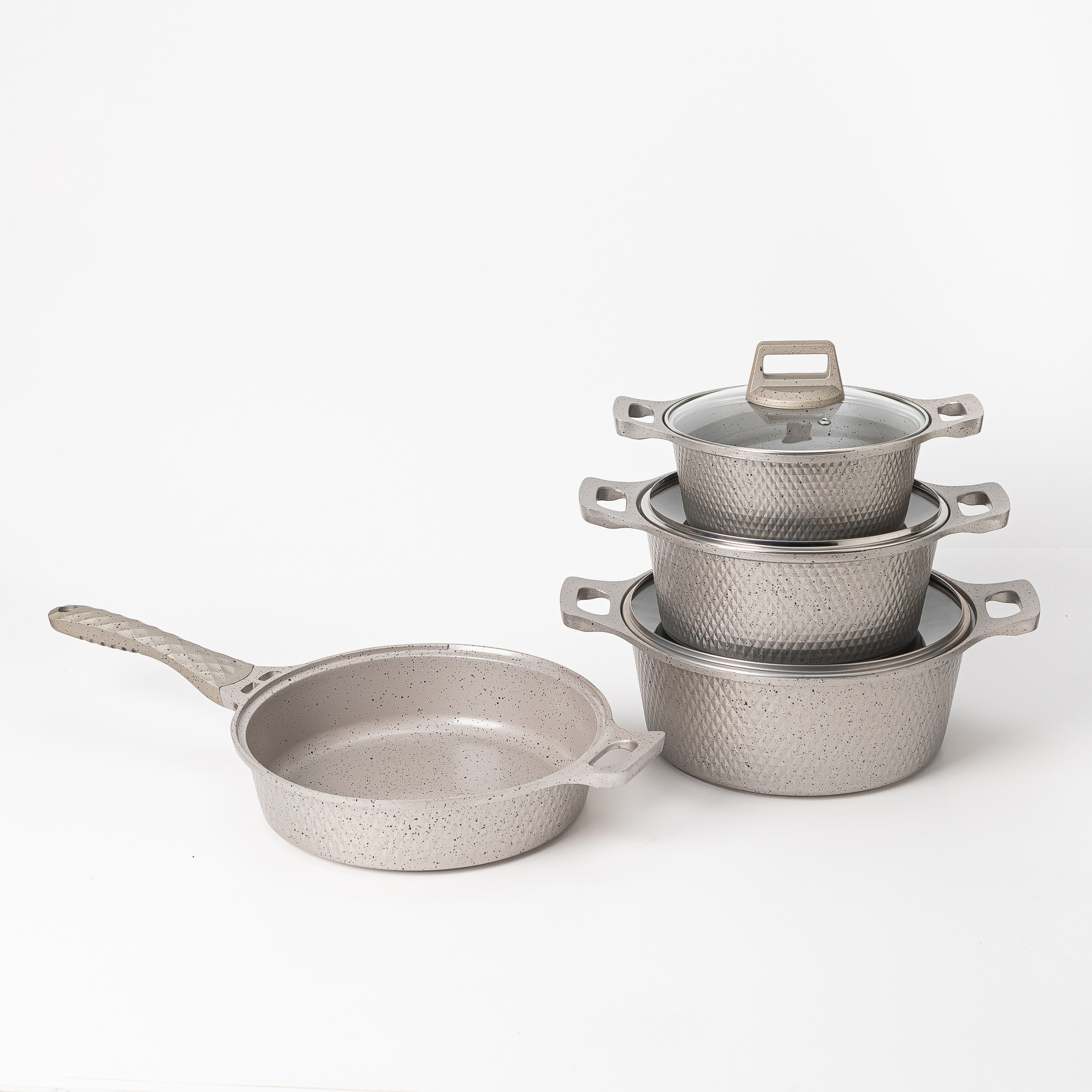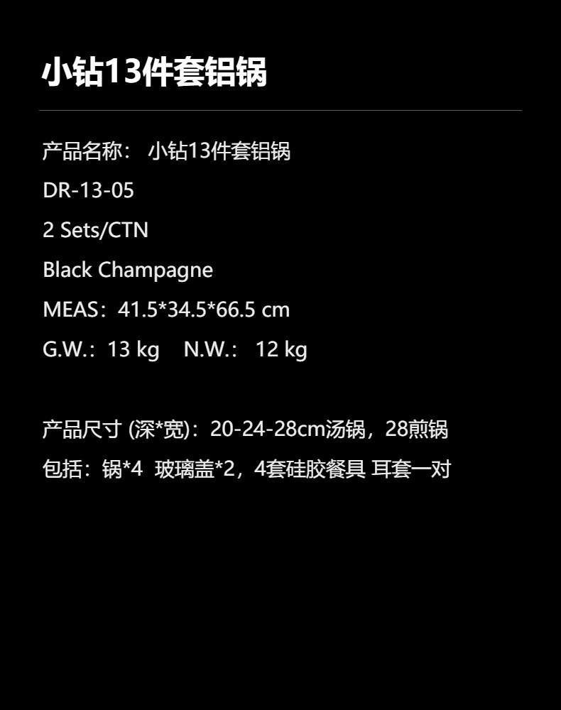 Foreign trade aluminum pot diamond 13 sets of aluminum pot new medical stone non-stick pot soup pan frying pan die-cast aluminum pot cross-border