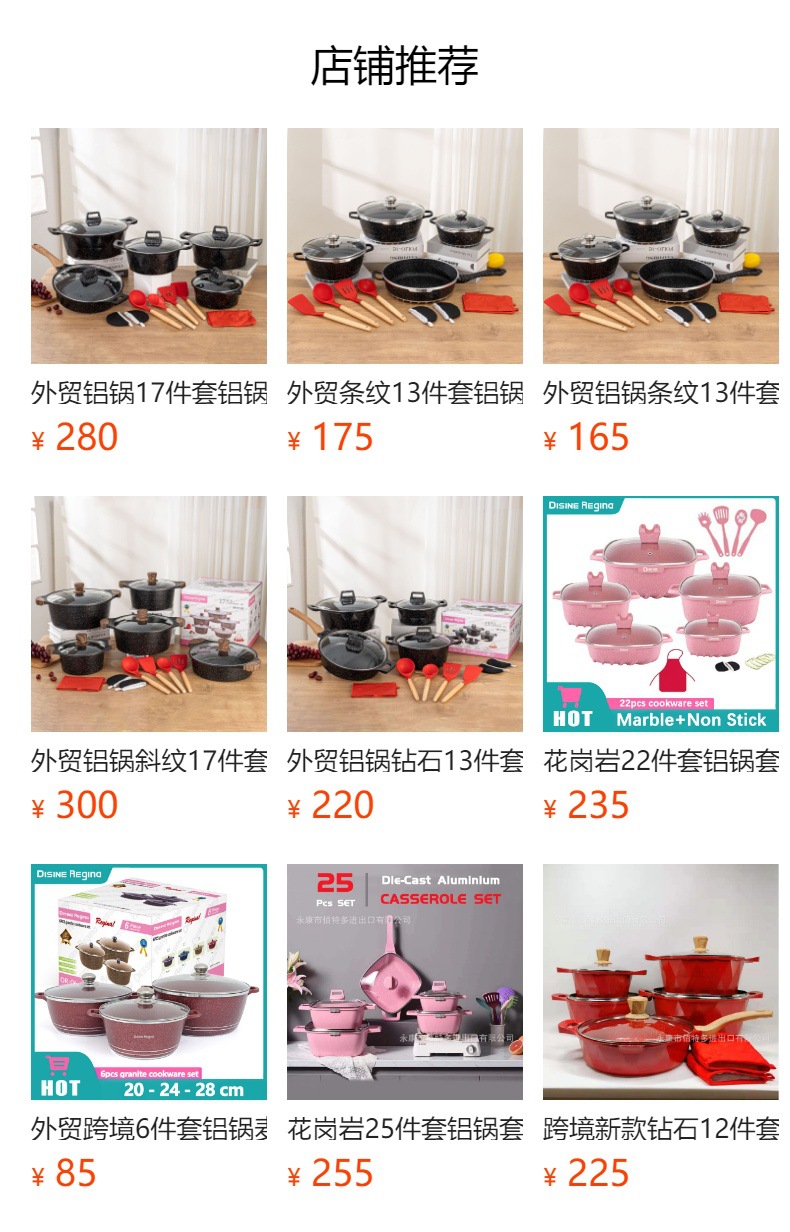 Foreign trade aluminum wok twill 17 sets of aluminum wok new large non-stick stockpot frying pan die-cast aluminum wok cross-border