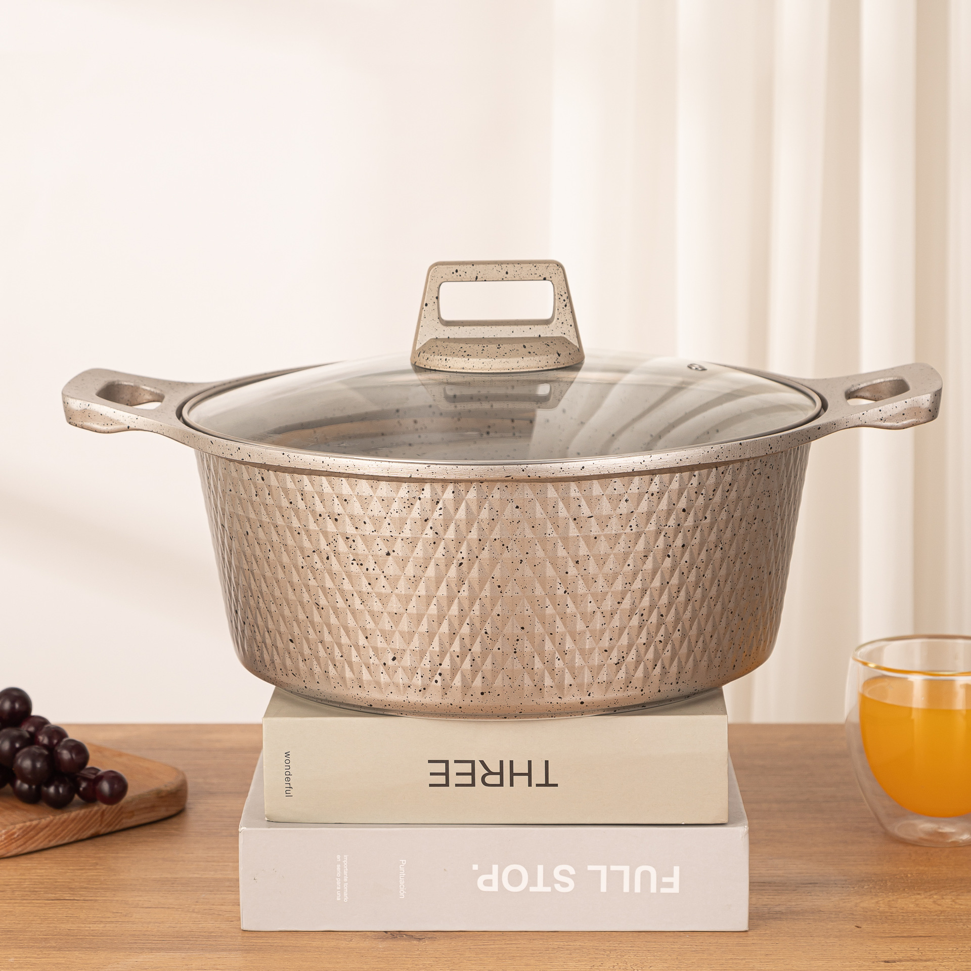 Cross-border new diamond 12-piece set of aluminum pot Maifan stone non-stick soup pot frying pan die casting aluminum foreign trade exports